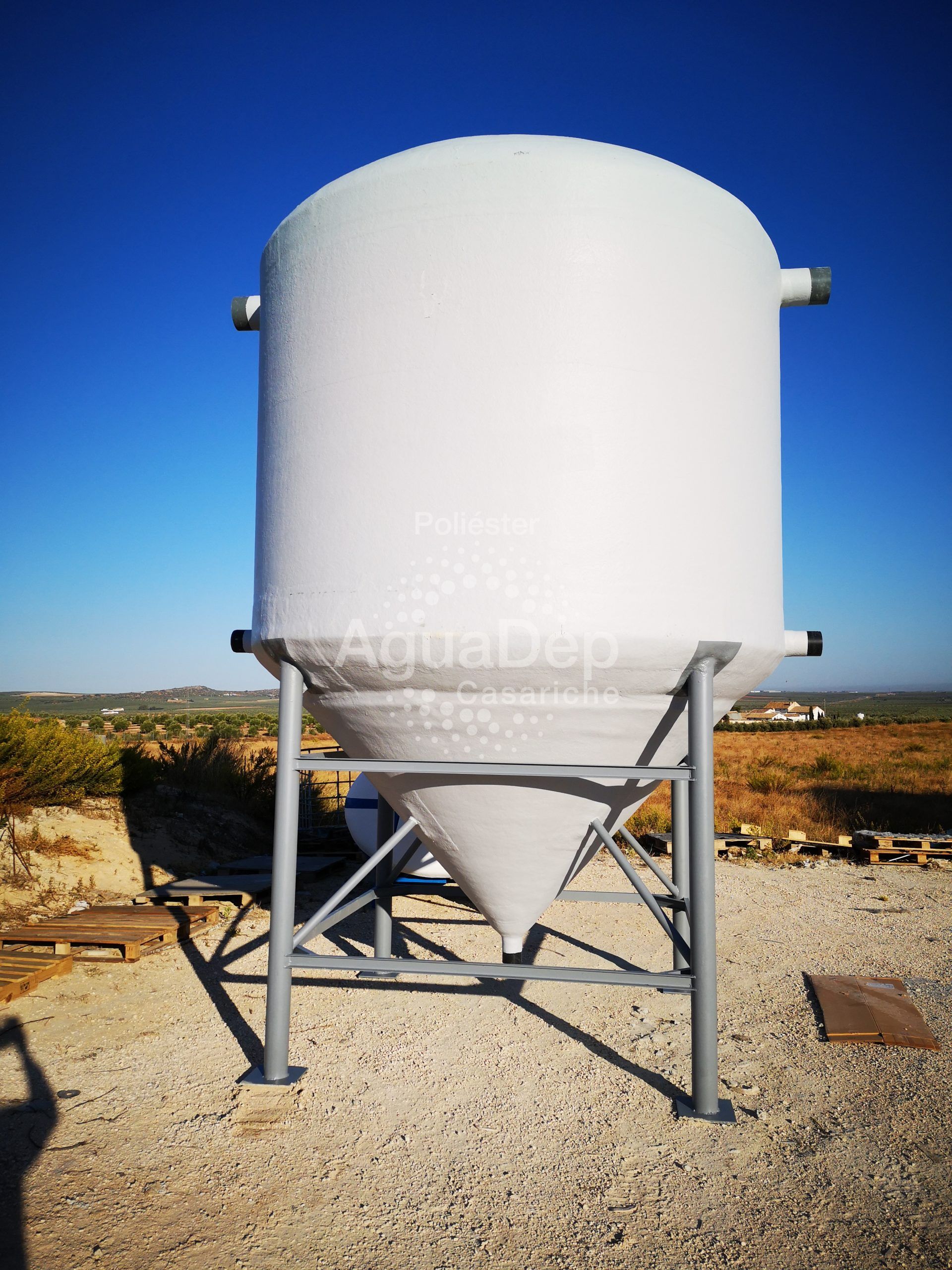 Sus dimensiones y los reforzamientos con fibra de vidrio convierten a este depósito en un tanque muy sólido y resistente, preparado para soportar un uso continuo en instalaciones de tratamiento de aguas.